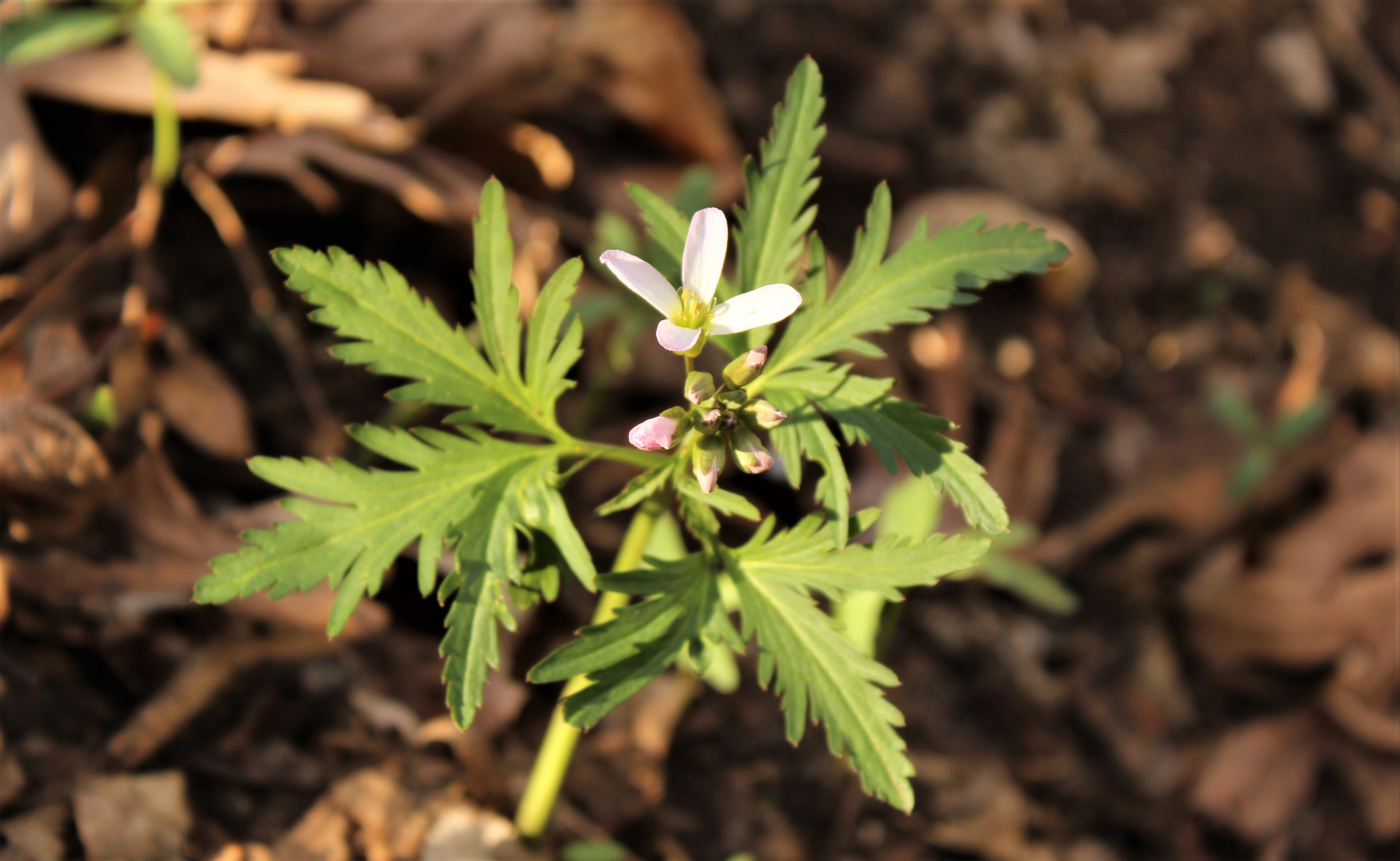 With our eyes focused on the ground, we eagerly searched for small, white flowers amongst the dry remains of last year’s vegetation. Ah-ha! we spotted a blooming plant in the mowed lawn of the cemetery.