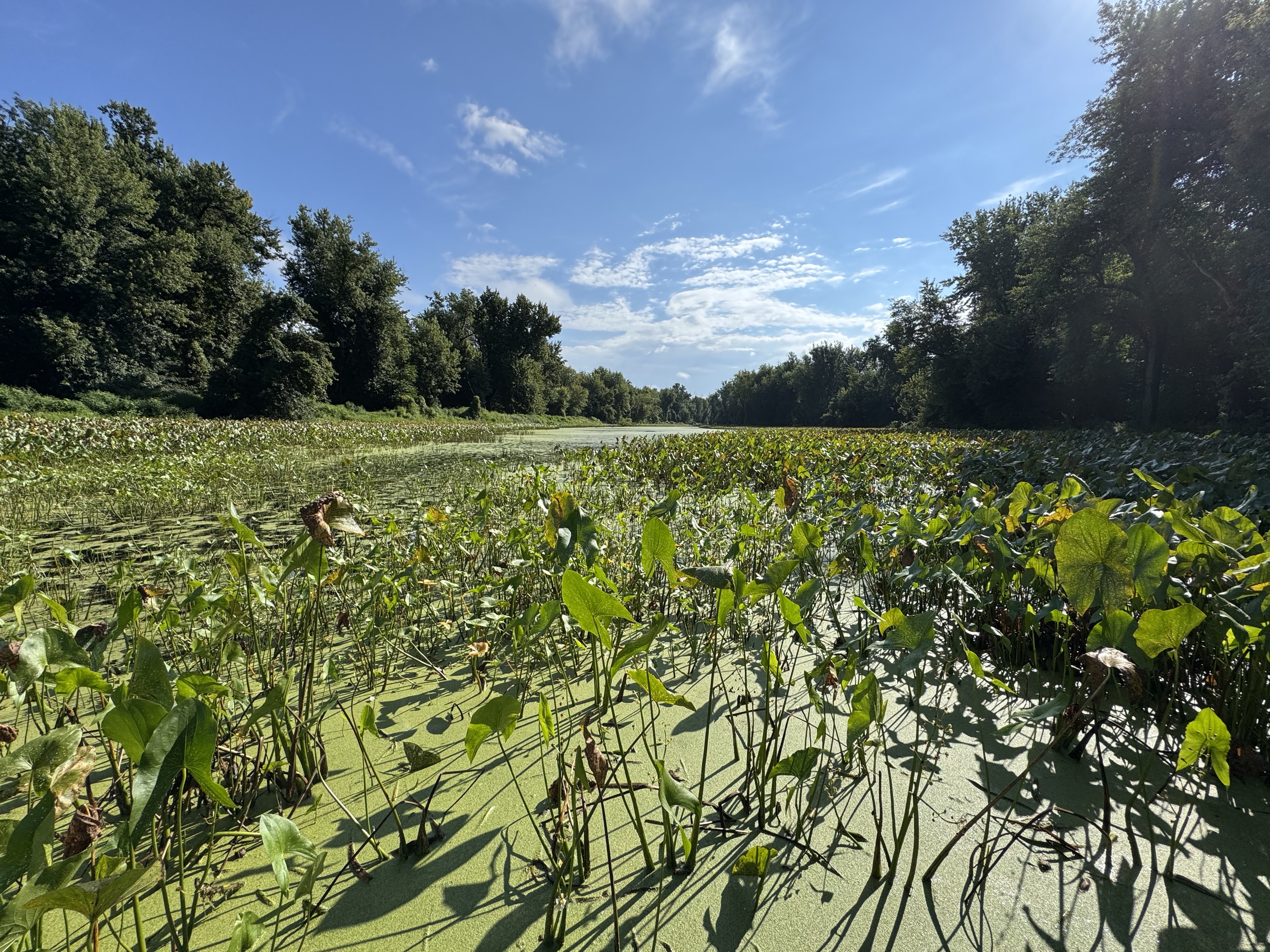 This past summer, I finally arranged a few visits to the islands located in what is called the Andalusia Slough. Initially, I was disappointed with what I found, though not entirely surprised. The vegetation on the islands was shockingly depauperate. The floodplain forests were composed of a near monoculture of silver maple (Acer saccharinum) overtopping an herbaceous layer composed almost entirely of wood nettle (Laportea canadensis), clearweed (Pilea pumila), and lanceleaf aster (Symphyotrichum lanceolatum). Emergent marsh communities were dominated by our two disturbance-tolerant annual smartweeds: pinkweed (Persicaria pensylvanica) and pale smartweed (Persicaria lapathifolia). Both species towered to heights of six to eight feet in some places, as if on steroids. Perhaps the intense nutrient loading from decades of agricultural runoff has encouraged this type of growth. After further exploration, I quickly came to realize that the near entirety of the islands and their intercalated sloughs showed signs of floristic degradation caused by the high-intensity and long-duration flooding that is now a regular occurrence on the Mississippi. However, none of this was necessarily a surprise based on my other experiences in the Mississippi floodplains. As it often does here in the (to put it mildly) ecologically degraded Midwest, my curiosity quickly changed from “what is the vegetation like?” to “where are the pockets of remaining diversity?” Even on the most degraded sites, I have learned that there is often a speck of diversity left somewhere that can tell you something new, a glimmer of hope in the darkness, and I was set on finding it.