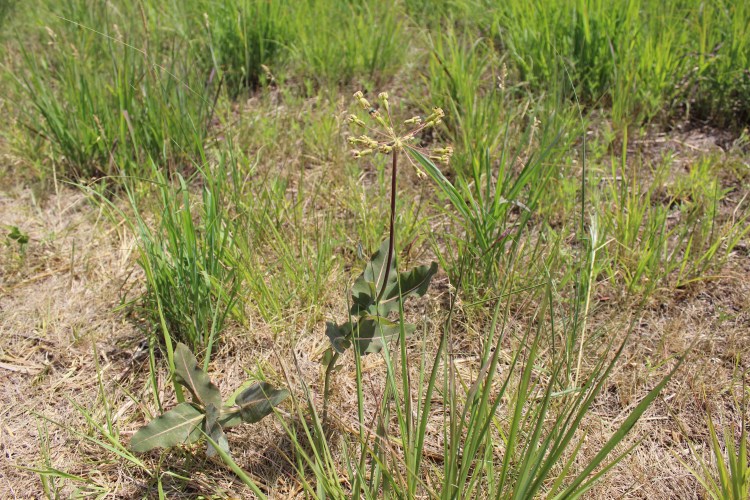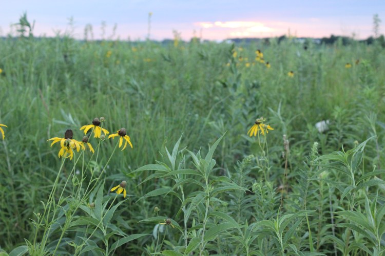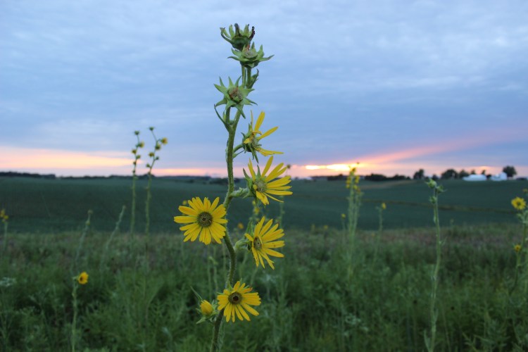 Mesic and dry-mesic tallgrass cemetery prairie with compass plant, rattlesnake master, black eyed susans, lead plant, pale purple coneflower, big blue stem, little blue stem, and flowering spurge.